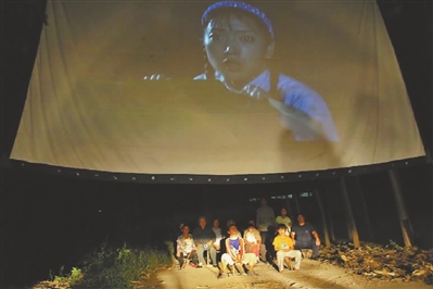村头看电影。