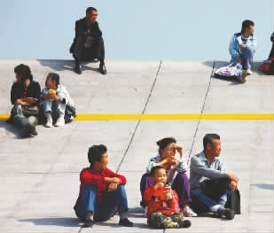 逛累了坐下来看。
