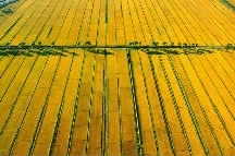 看着一幅幅美丽的田园画卷,橙色的抽油机隐约地起伏在稻田深处,游人可以静静地看,近近地看,养眼、舒适,不愿离去。这里就是以每年7亿斤清香的优质稻米走进世界的每一个角落的盘锦稻田。盘锦盛产大米、素有“鱼米之乡”的美誉,是我国重要的商品粮和优质大米出口基地。“盘锦大米”享誉海内外。它生长在温暖湿润的的海洋性气候下,生长在偏碱性的黑土壤里,有辽河水的灌溉,温度适宜,生长期长,籽粒饱满,营养丰富,曾被选为北京奥运会食用米。