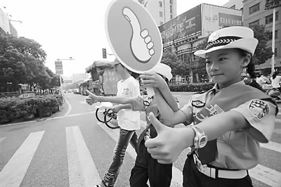 近日,由浙江省台州市椒江区文明办、交警大队等部门联合开展的“礼让斑马线 大拇指行动”全面启动。青年志愿者、交警协管员、小交警和边防民警等100多人一起上路,竖起大拇指引导牌,引导行人安全过马路,以此提醒驾驶员礼让斑马线,倡导广大交通参与者关爱生命,文明出行。新华社发
