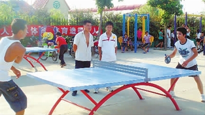 寿光县三元朱村,蔬菜大棚和挥拍打球的农民,构成了中国农村新画卷。本报记者 宋澎 摄