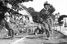8月18日 ,重庆能源集团打通一矿400名班组员工参加了矿里组织的“我爱我家”安全技能竞赛。该竞赛重在提升员工的综合素质、安全生产的协作能力及突发事件的应变能力。每支参赛队选派4名队员参加竞赛,模拟井下现场穿越工作面、穿戴自救器、灭火、负重垒隔离墙、安全加油站等12个项目,以完成时间的多少计算成绩。让参赛者感触深刻的是,面对突发事件,不靠团队协作的力量想化险为夷很难。胡明军 吴倩南 摄