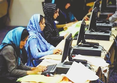 阿富汗独立选举委员会官员23日宣布,总统选举初步结果将推迟至9月7日公布。原因是对收到的225件投诉进行调查。图为23日,该委员会工作人员在电脑前核对选票。肖劼 供图