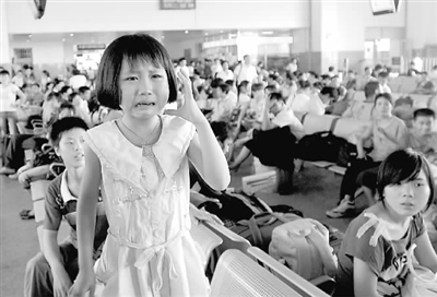 8月25日,杭州火车站。一名即将离开父母返乡的小女孩号啕大哭。随着暑假接近尾声,许多赶到城市与务工的父母团聚的“留守娃”们又要回到家乡,为新学期开学做准备了。这些孩子平日留守家乡读书生活,每年寒暑假才得以与外出打工的父母团聚。