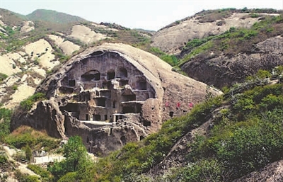 古崖居位于北京延庆西北山区峡谷中,已开辟为游览胜地的“古崖居”,留下无数不解之谜。当人们沿着进山公路前行时候,走过一段山间小路,会豁然领略到密布在山崖之上的石窟群,共有147个洞穴(图一)。它是目前北京地区发现的规模最大的古人洞窟聚落遗址。对于古崖居开凿年代、用途及历史背景,研究者们有的认为它是古时屯兵之所,也有的判断其为江湖上绿林好汉的藏身之地,迄今尚无最终定论。游客不妨亲临实地,所见所闻,自己做一番判断。