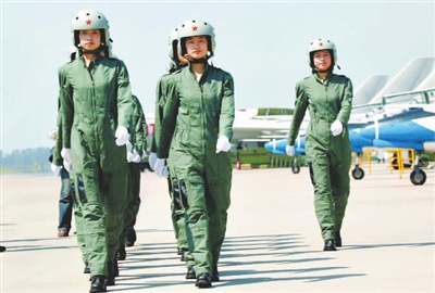 战鹰昂首列阵,女飞行员意气风发。8月30日,空军首批歼击机女飞行员更换新型飞行装具仪式在华北某机场举行。16名女飞行员身着全新飞行装具,在蓝天白云和新型战机映衬下,更显飞天豪气和当代巾帼威武英姿。(崔文斌 摄)