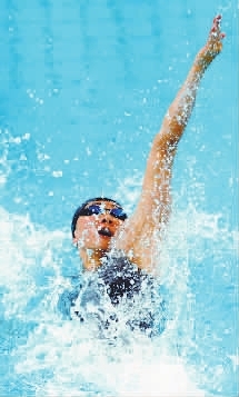 8月30日,解放军选手杨礼在比赛中。当日,在“水立方”进行的2009年全国游泳锦标赛女子50米仰泳决赛中,解放军选手杨礼以27秒90的成绩获得金牌。新华社记者 李文 摄