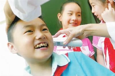 上海中小学开学第一天测体温防“甲流”