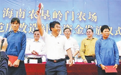 8月26日上午,海南农垦岭门农场红四队的黎族职工高聪领到了第三批住房补贴8000元。他把钱高高地举过头顶,激动地说:“做梦都没想到,自己能这么快住上楼房。”