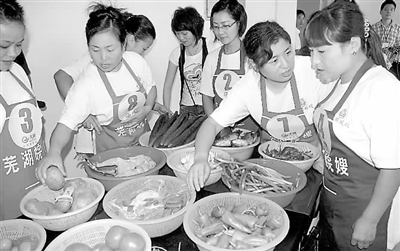 9月3日,安徽省芜湖市举行首届“皖嫂”家政技能决赛,评选“巾帼家政服务技能大赛技术状元”和“芜湖十佳皖嫂”。此次活动于4月启动,共有600多人参赛。比赛分计算机操作、病人护理、菜肴制作、语言表演、服装熨烫、餐桌插花、婴儿沐浴及抚触等家政服务方面内容。陈立希 摄