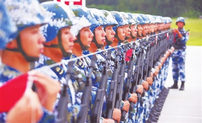 新中国成立60周年国庆阅兵式已经进入倒计时,国庆受阅部队的全体官兵士气高昂。官兵们顶烈日斗酷暑,高标准严要求,将以崭新的形象、威武的军姿展现在世人面前。这是记者在国庆阅兵村拍摄到的一个训练镜头(8月21日摄)。新华社记者 查春明 摄