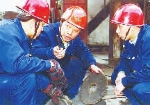 李晏家(中)与班组人员一起修旧利废