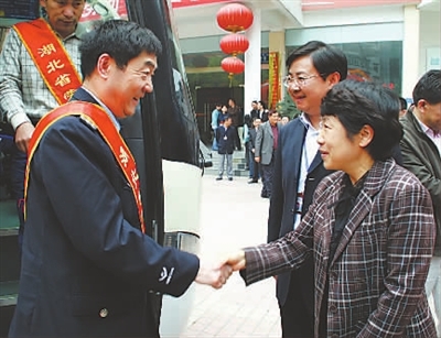 宜昌市委常委、市委统战部部长、市总工会主席廖达凤,市总工会党组书记、常务副主席张毅迎接劳模