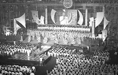 为热烈庆祝中华人民共和国成立60周年,营造“和谐中国、全民全运”的浓厚氛围,最近,青岛市总工会在青岛国信体育馆隆重举办“我们与共和国同行”2009青岛职工艺术节开幕式暨大型主题晚会,正式启动2009青岛职工艺术节。市委、市人大、市总工会等单位的领导与全国劳模许振超、郝建秀小组的代表出席了开幕式,并与近万名职工一起观看了精彩的文艺演出。