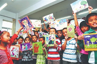 9月8日,六安市特殊教育中心的孩子们展示自己为老师制作的贺卡。