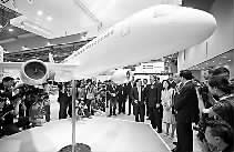 9月8日,嘉宾在航展上参观国产大客机C919外形样机。当日,中国商用飞机有限责任公司的首个大型客机研发项目C919外形样机在香港开幕的2009年亚洲国际航空展上亮相。新华社记者 周磊 摄
