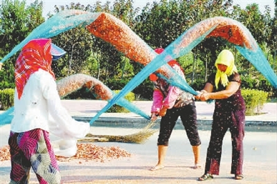 今年赣榆县沿海养殖的6万多亩南美白对虾喜获丰收,养殖户纷纷赶在国庆、中秋两节到来前捕捞对虾,加工成海米,运往外地销售。新华社发 (司伟 摄)