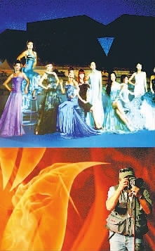 9月10日下午,中国网球公开赛官方对外公布了2009年中网冠军奖杯——中国之杯。同时,中网时尚队也宣布成立。 图为一位摄影师在中网宣传画下面拍照。画中,时尚队的模特们在中网新的莲花网球场前留影。