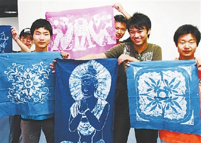 9月10日,学员们开心地展示自己制作的蜡染作品。