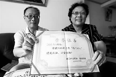 在老人家里,最近一年获得的证书多达数十张,二老被评为扬州“慈善家庭”,今年3月,扬州市文明办等单位更是授予了二老“扬州好人”的称号。