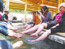 木格措春季,千瀑峡谷两边盛开千姿百态、艳丽多彩的杜鹃花,使满峡成了花的海洋,这里汇集了杜鹃花中的68个品种,从4月中旬先后开放至7月,花期长达4个月,不啻为“中国情海”又增添了美丽的色彩。
