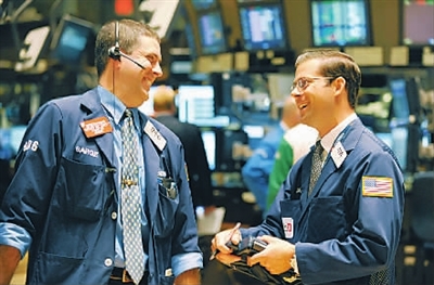 金融危机爆发后,纽约股市连创新低。2009年3月,道琼斯指数和标准普尔指数都创出10多年来的新低。然而在随后的6个月里,美股出现超过50%的升幅。股市回暖被认为是经济出现复苏的重要信号,但是业界对此也存在新一轮泡沫的担忧。这是2009年9月9日,两名交易员在美国纽约证券交易所内交谈。新华社记者 谷欣容 摄