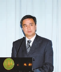 9月15日,泰国总理阿披实出席在曼谷总理府举行的新闻发布会。当天,泰国内阁决定,9月18日至22日在曼谷律实区实施国内安全法,以应对民间政治团体反独裁民主联盟(反独联)支持者(“红衫军”)计划于19日举行的大规模反政府集会。新华社发(塔纳摄)