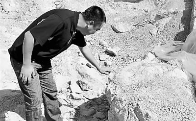 据记者了解,今年3月,辽宁省喀喇沁左翼蒙古族自治县国土资源局接到报告,有人在大城子镇小城子村的一处采石场发掘出古生物化石,并有部分散佚。中国地质科学院季强研究员、姬书安研究员等人闻讯后立即赶到现场。他们发现,经地方有关部门保护并追回的古生物化石主要有:一块保存有1/3的恐龙头骨化石、2块不完整的肠骨、1块爪骨、2节椎骨等。另有一些出土化石毁坏严重,残骸已无法辨识。