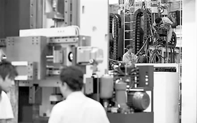 沈阳铁西区机床集团有限公司职工在国际一流水平的生产线上。本报记者 于文国 摄