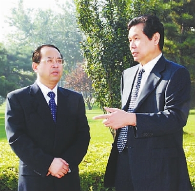 这是开滦集团董事长张文学与总经理殷作如正在共商企业长远发展大计。 □董泽民 摄