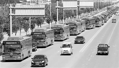 当天,石家庄市将新购置的600辆新型天然气公交车在26条公交线路投入试运行,方便市民出行。