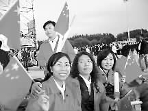 新中国成立60周年,恰是发现大庆油田50周年的日子。9月22日,大庆人汇聚铁人广场,用自编自演的 “盛世欢歌”,向祖国汇报在这段历程中班组员工的收获和成长。自1959年至今,大庆班组员工累计生产原油20亿吨,实现年产原油5000万吨连续27年的稳产高产,创造了世界同类油田开发史上的奇迹。油田优秀共产党员陈秀霞(图中)、巾帼建功先进个人标兵胥艳玲(图左)等采油三厂三矿的13名优秀班组员工代表在喜庆的气氛中回顾与展望着。崔英春 摄