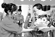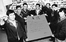 9月21日,地处新疆塔克拉玛干沙漠边缘的塔河采油二厂集输二大队员工们打出“欢迎状元凯旋”的横幅,敲锣打鼓地迎接工友肖淑国载誉归来。平时练技艺精益求精的肖淑国,在举国喜迎建国60周年的气氛中,代表企业参加西北石油局、西北油田分公司第二届职业技能竞赛,最后不负众望,摘取集输工桂冠。 张明江 摄