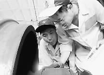 手抄38张A4纸1216个数据无错漏!9月23日,成都东车辆段密地列检作业场边线修组临时突击任务提前两天完成。终于可以无愧于祖国和企业了!检车员技师黄国春(右)长舒一口气。从17日到25日,要更换13辆车上38条轮对,只有5名车辆钳工的线修组遇到了从未有过的困难。“黄国春能行。”有人说。果然,黄国春愣是从刮、磨掉布满油泥的轮子、轴承上,准确地抄完上千个数据。 朱治建 摄