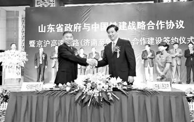 9月25日,山东省人民政府与中国铁建战略合作协议暨京沪高速公路(济南至乐陵段)合作建设签约仪式在济南举行,山东省委常委、副省长王军民(右)与中国铁建董事长李国瑞签署了战略合作协议。