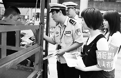 为确保国庆期间路畅人安,进一步遏制因酒后驾驶引发的道路交通事故,湖南省洪江市公安局交警大队采取点面线相结合的措施,组织民警和26名青少年交通安全宣传志愿者深入辖区开展以“酒后禁驾、人人有责”为主题的《交通安全法》宣传。 罗运山 杨超摄