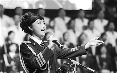 9月30日,来自太原市地税局的合唱团在领唱徐娟的带领下演唱歌曲《南泥湾》。