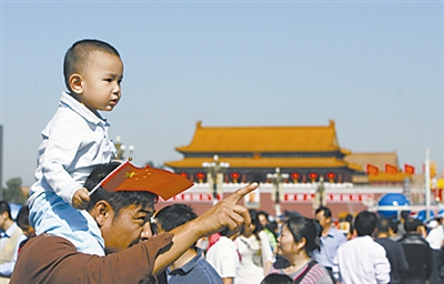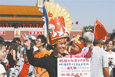 这位与祖国同一天生日的游客特意来到天安门广场过生日。