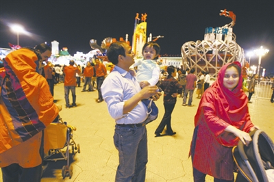 10月2日,北京遭遇“秋老虎”,但酷热挡不住人们的参观热情。