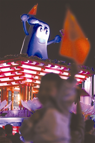 2010年上海世博会吉祥物海宝是彩车方阵中的明星。