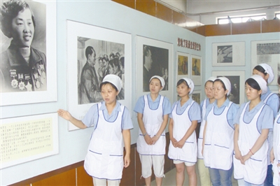 刘小萍给组员讲解赵梦桃事迹