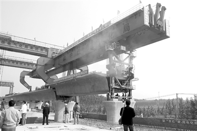 10月9日上午10时30分,由中铁电化局西铁工程公司承建的京石铁路客运专线控制性重点工程——永定河特大桥开始架梁,这标志着京石客专最长的桥梁施工进入新的阶段。