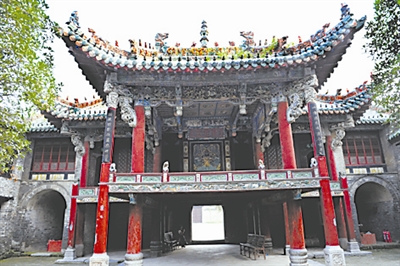 花戏楼位于安徽省亳州城北关,原名歌台,是一座演戏用的舞台。它以精湛的雕刻艺术,绚丽的彩绘魅力而闻名遐迩。花戏楼建于清康熙十五年,是全国重点文物保护单位,也成为安徽省亳州市的旅游胜地。(图一)