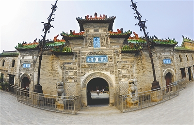 大磨砖墙镶满立体透刻砖雕,有整出戏文,故事、图案、花纹七十余种,观之琳琅满目。(图三)