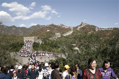 图为黄金周期间的八达岭景区。