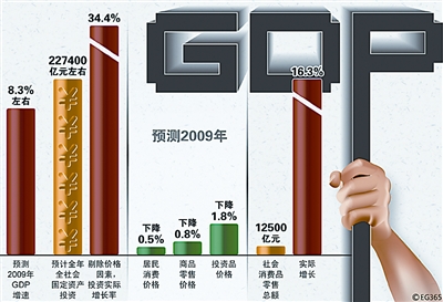 中国社会科学院10日发布了《中国经济形势分析与预测2009年秋季报告》,报告预测今年中国GDP增长速度将达到8.3%左右,可以实现保“八”的经济增长目标,今、明两年不会发生明显的通货膨胀。