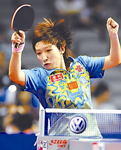 10月11日,刘诗雯在比赛中回球。当日,在2009年女子乒乓球世界杯赛四分之一决赛中,刘诗雯以4比0战胜韩国选手金景娥,晋级四强。