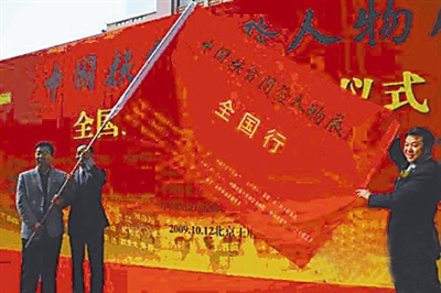 图为中国扶贫开发协会向巡展第一站山西代表授旗。李彦彬 摄