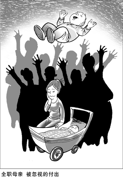 记者经过一段时间调查发现,由于我们的家庭、社区文化、早教机构及心理援助机构的建设还处在幼稚阶段,因而,对于全职妈妈渴望得到援助的心理需求表现出无能为力,这部分人群的阶段性心理困惑,值得有关部门关注。