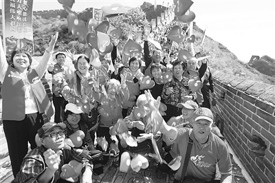 本报讯 9月28日,来自全国22个城市的百位骏丰爱心老人将写满祝福祖国话语的红心铺满金山岭长城。这些老人从不同岗位上退休,都是非药物自然疗法的受益者。